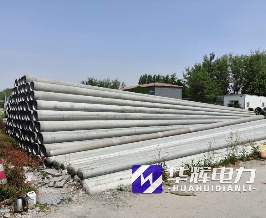 8米新城街道水泥电线杆通常采用钢筋混凝土离心成型工艺,杆体呈锥形结构,梢径150mm-190mm,根径230mm-270mm,壁厚40mm-50mm。根据标准GB/T4623-2014,产品混凝土强度等级不低于C40,主筋采用HRB400级钢筋,配筋量根据抗裂弯矩要求设计,标准抗裂弯矩可达12-18kN·m,破坏弯矩不小于24kN·m。杆体重量约0.5-0.8吨,运输安装便捷,适合人工或小型机械施工。